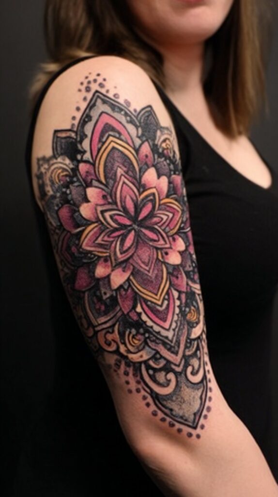 Mandala patterns in tattoos are mesmerizing geometric designs rooted in ancient spiritual traditions, especially Hinduism and Buddhism, where they symbolize the universe, unity, and harmony.