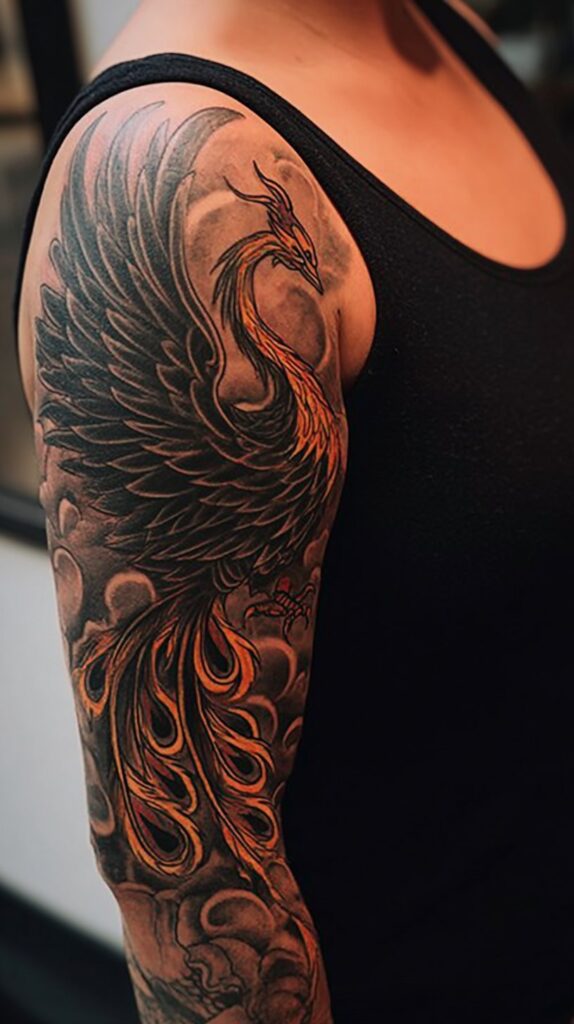 The phoenix rising tattoo is a powerful symbol of resurrection, rebirth, and hope, deeply rooted in mythologies across cultures. This legendary bird is said to burst into flames and be consumed by its own fire, only to rise anew from the ashes, stronger and renewed.