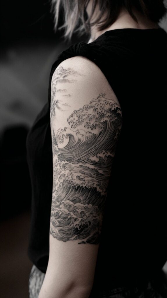 Ocean waves tattoos are captivating symbols of freedom, resilience, and the ever-changing journey of life. Inspired by the natural rhythm and powerful flow of the sea, these designs evoke a deep sense of connection to nature and the vastness of the ocean.