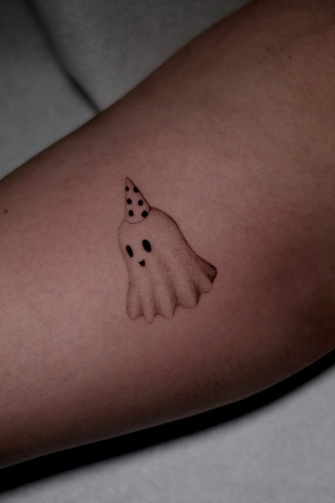 It’s a simple ghost tattoowith just the right amount of charm for those who see Halloween as a celebration of cuteness, not fright.