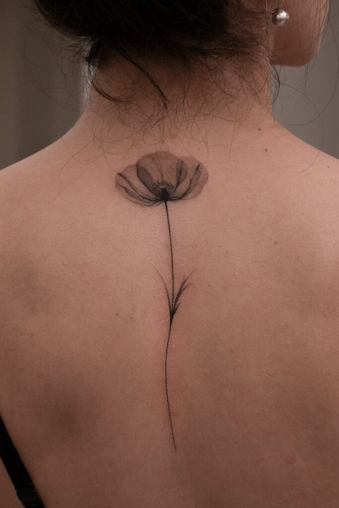Flower spine tattoos flow elegantly along the body s curves, while larger flower back tattoos can spread across the shoulders for a bold statement.