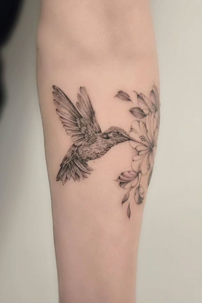 This design is perfect for those who want a hummingbird tattoo minimalist style with an artistic, feminine twist.