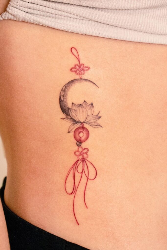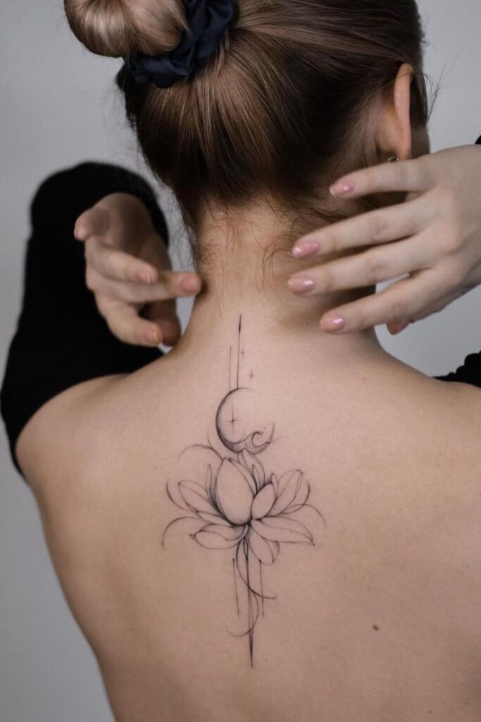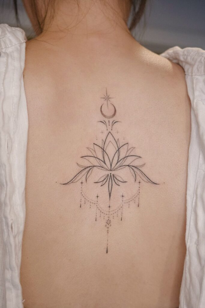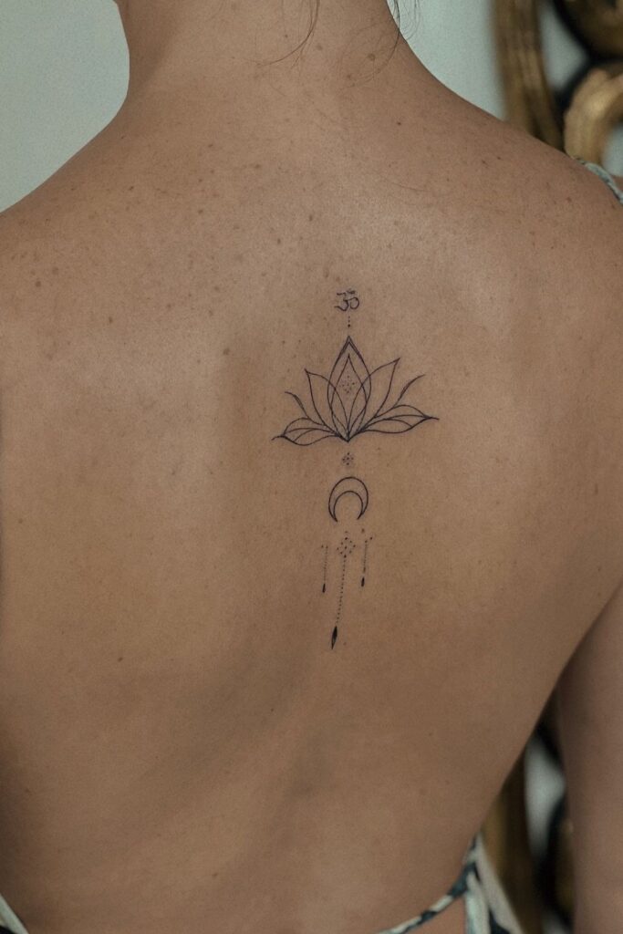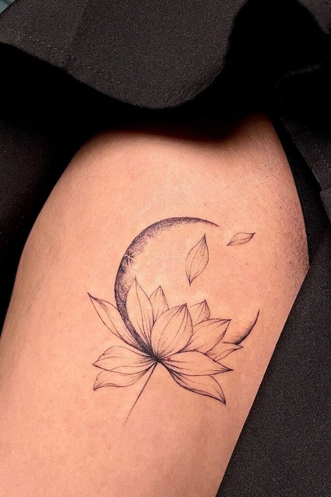Others pair a minimalist moon with a simple lotus for a design that feels serene and balanced.