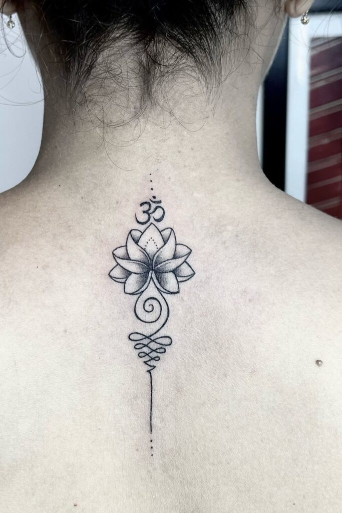 A lotus and Om tattoo represents the connection between the physical world and the spiritual self, making it a popular choice for those who practice yoga, meditation, or mindfulness.