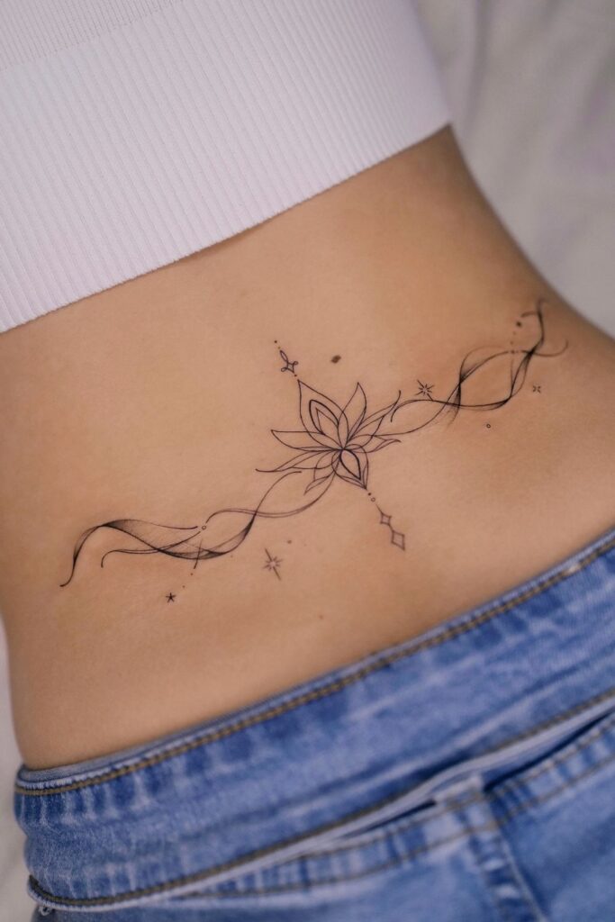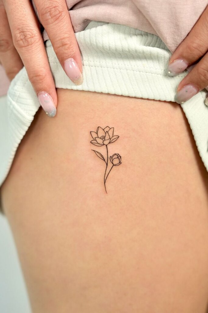A lotus flower tattoo on hip creates a sensual and feminine look, especially when the petals follow the shape of the body. This placement allows the design to feel intimate and expressive.