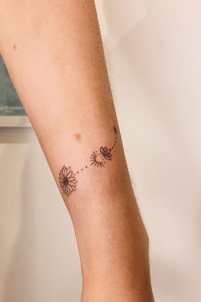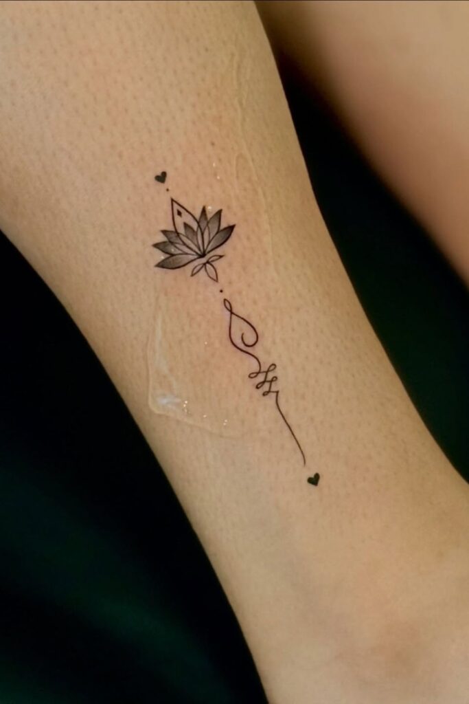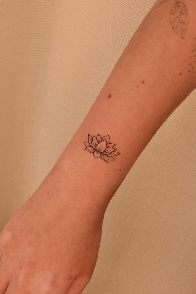 The wrist suits tiny, simple lotus tattoos that feel personal and discreet.