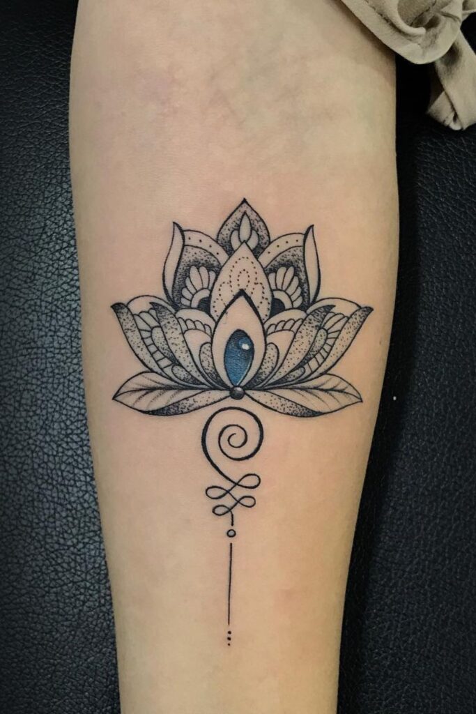 When it sits above or within the petals of the lotus, the tattoo becomes a reminder to stay grounded, present, and aligned with one s true self.