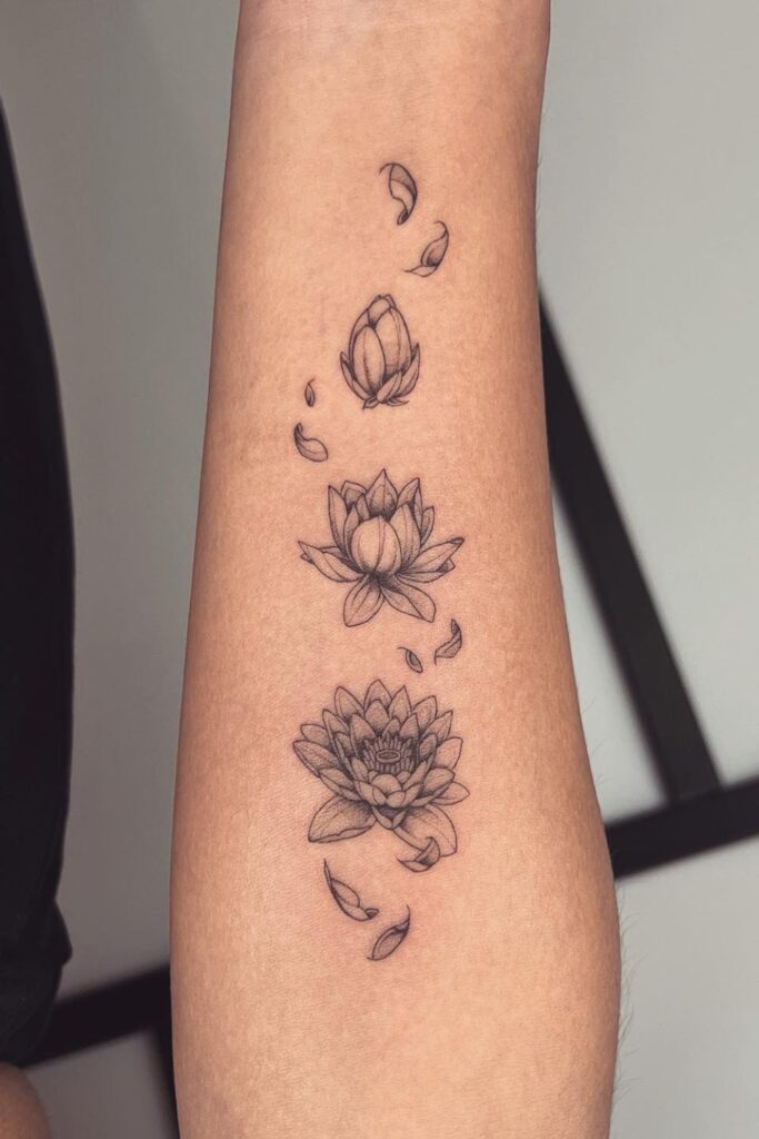 Each petal can be shaped with precision, and additional elements, such as subtle water effects, shading, or ornamental patterns, can elevate the tattoo into a striking centerpiece.