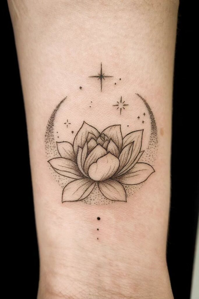 A simple, minimalistic lotus might be perfect for a wrist or ankle, while a larger piece allows more room for realism, shading, or accompanying elements like the moon, Om symbol, or other .