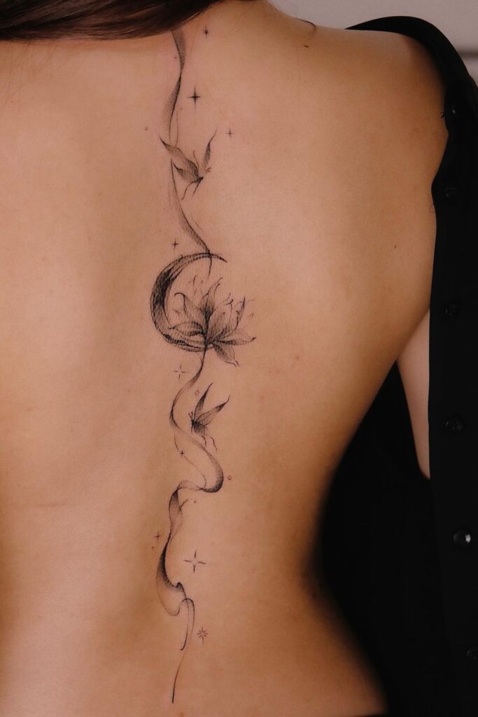 Vertical placements like the spine or sternum create a graceful silhouette, while areas like the or ribcage offer a subtle touch of beauty.