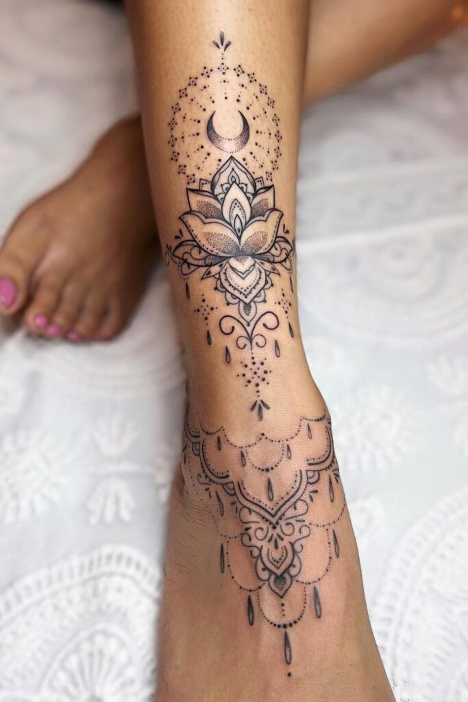Lotus mandalas typically look stunning as larger pieces on the sternum, , or thigh.