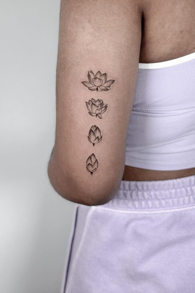 A blooming lotus tattoo often represents a breakthrough moment or a new beginning, while a pretty lotus tattoo may be chosen simply because the wearer is drawn to the serenity of the design.