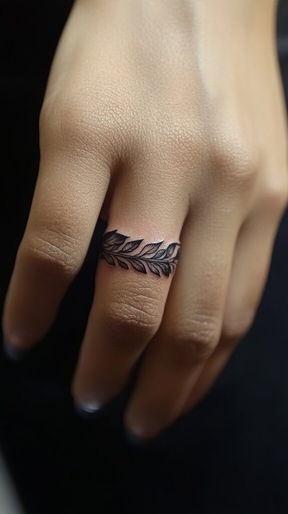 8. Leaf wedding ring tattoo
