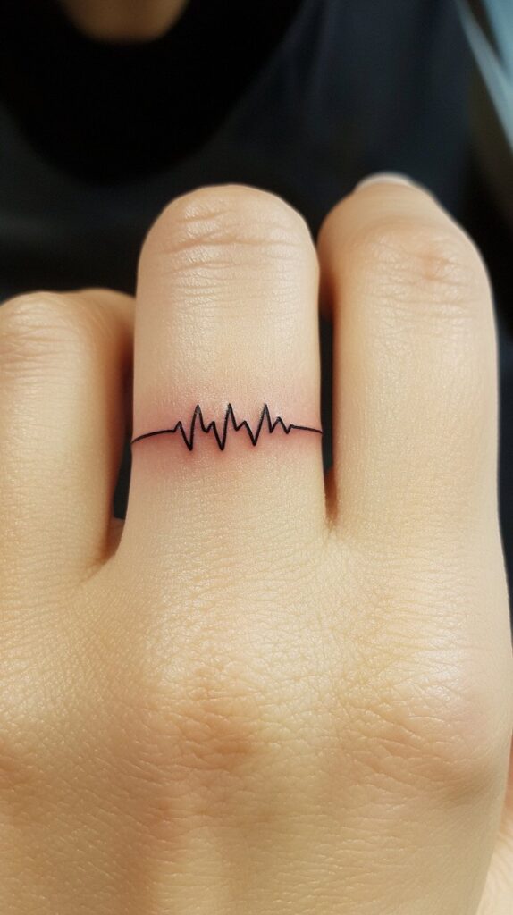 A heartbeat line wedding ring tattoo is a deeply personal and romantic design that symbolizes the connection between two people whose hearts beat as one. This tattoo often resembles an electrocardiogram (ECG) line, capturing the rhythm of life and love in a striking visual form.